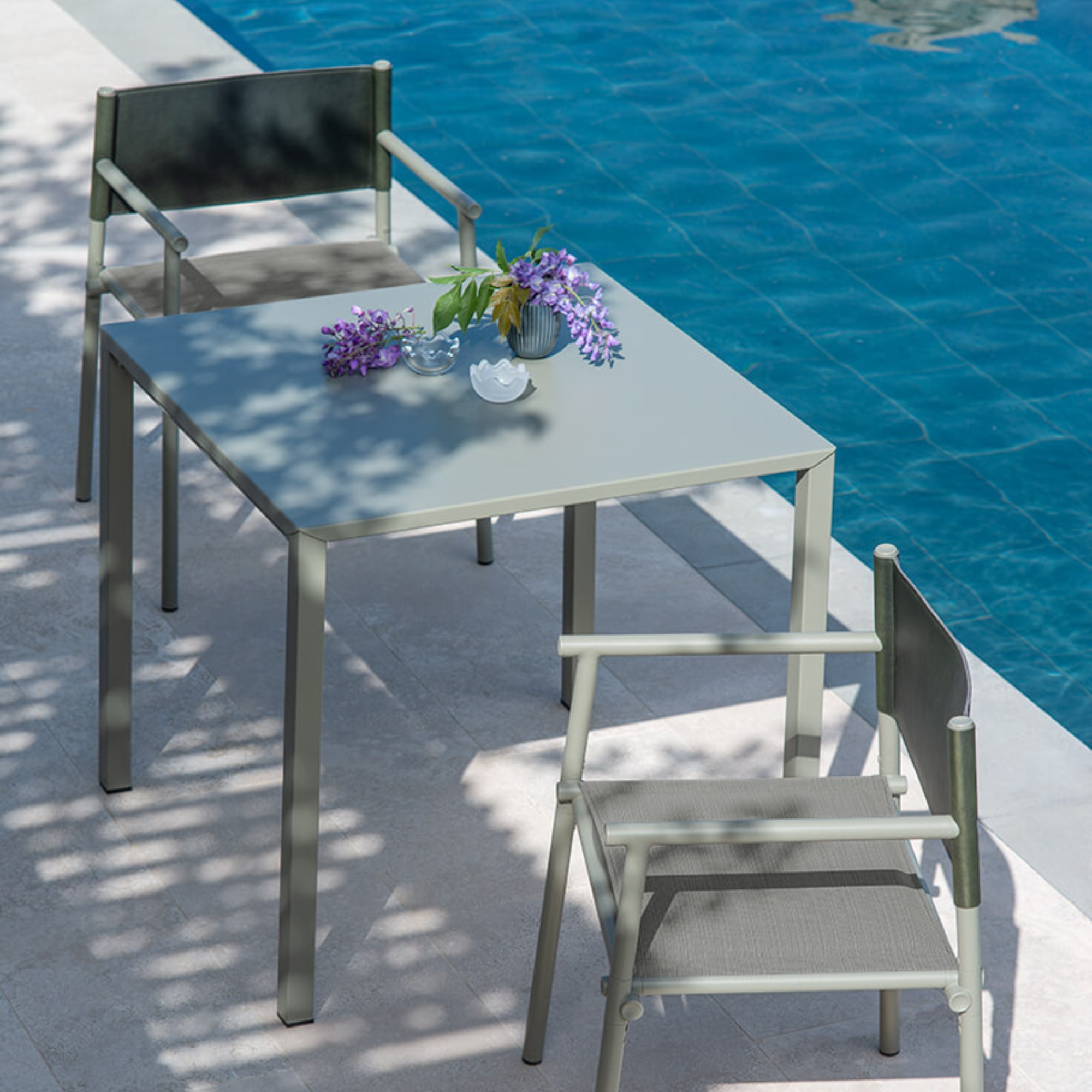 Model Number : 53378The Urban square table offers a clean, contemporary design combined with the natural lightness and durability of aluminium. Built for outdoor use, it is resistant to weather and everyday wear while remaining easy to handle and reposition. Its compact 90×90 cm square format comfortably seats four people, making it a practical solution for patios, cafés, and residential outdoor dining areas.