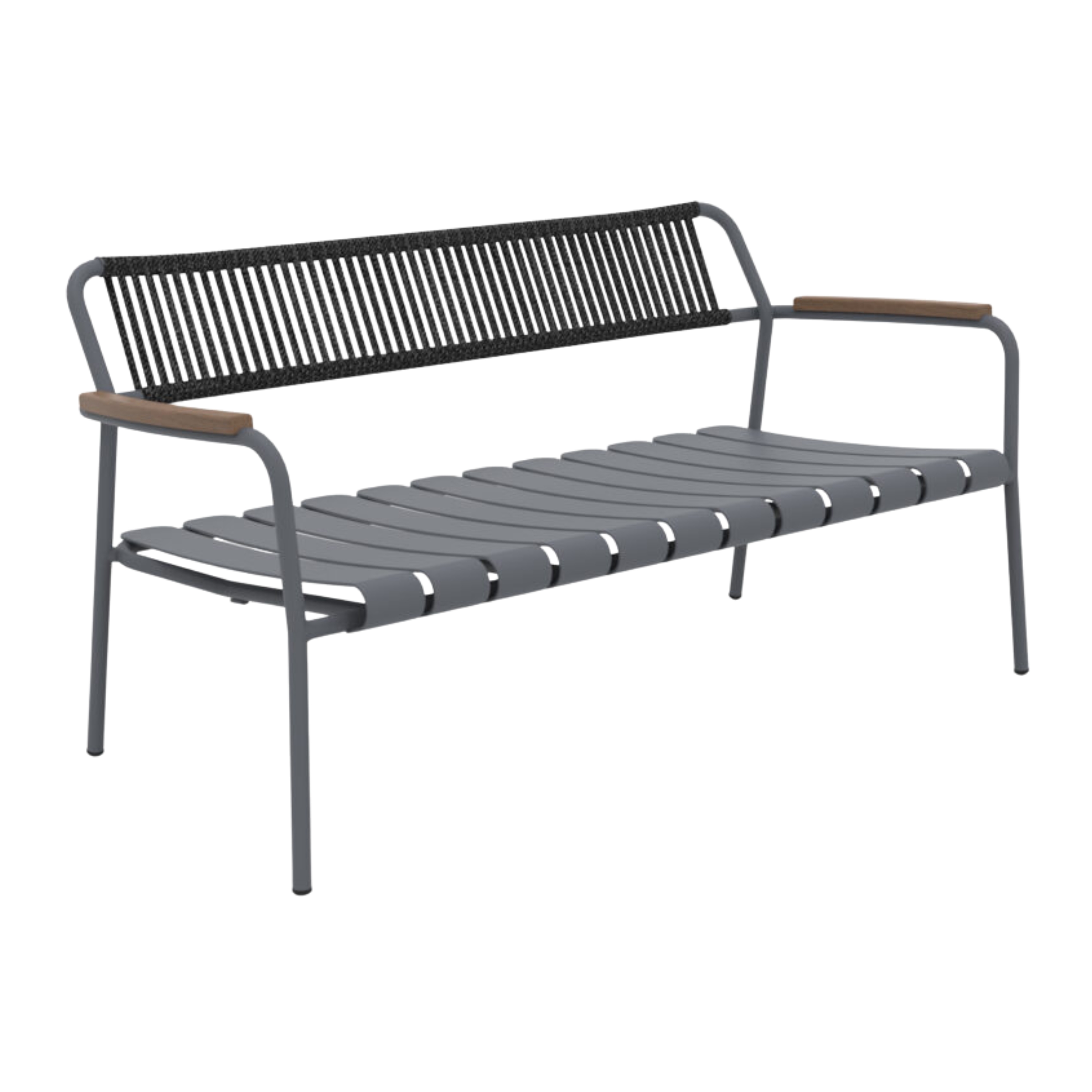 The Verdea Rope Sofa is an elegant and durable outdoor stacking chair, it features a lightweight, weather-resistant aluminium frame combined with a hand-woven synthetic polyolefin rope back.