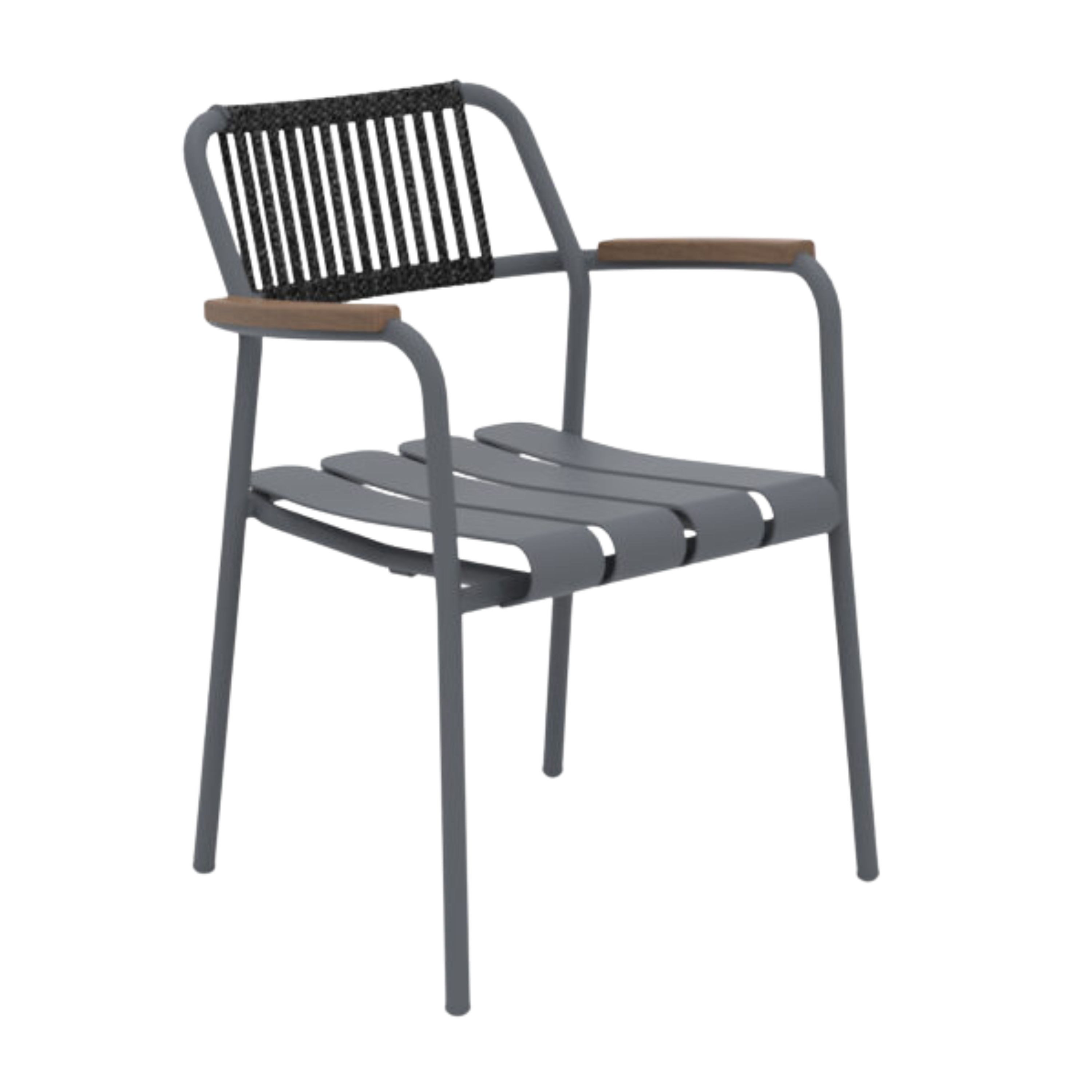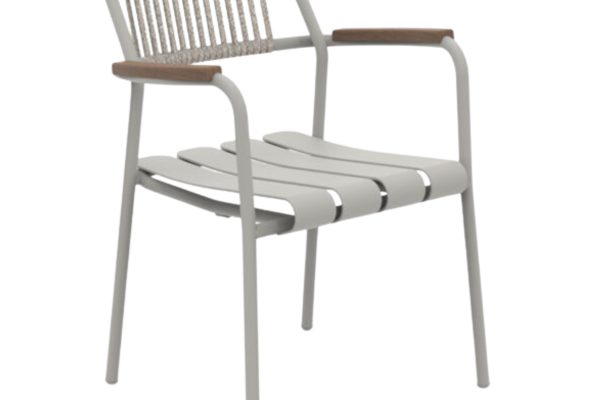 The Verdea Rope Armchair is an elegant and durable outdoor stacking chair, it features a lightweight, weather-resistant aluminium frame combined with a hand-woven synthetic polyolefin rope back.