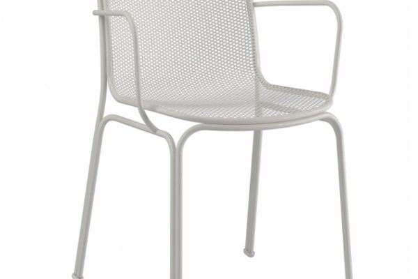 The Villa Armchair is a modern chair design, inspired by the iconic outdoor seating found at Parisian sidewalk cafes. The chair features a metal mesh made from expanded metal, paired with four tubular steel elements to create a lightweight yet sturdy frame.