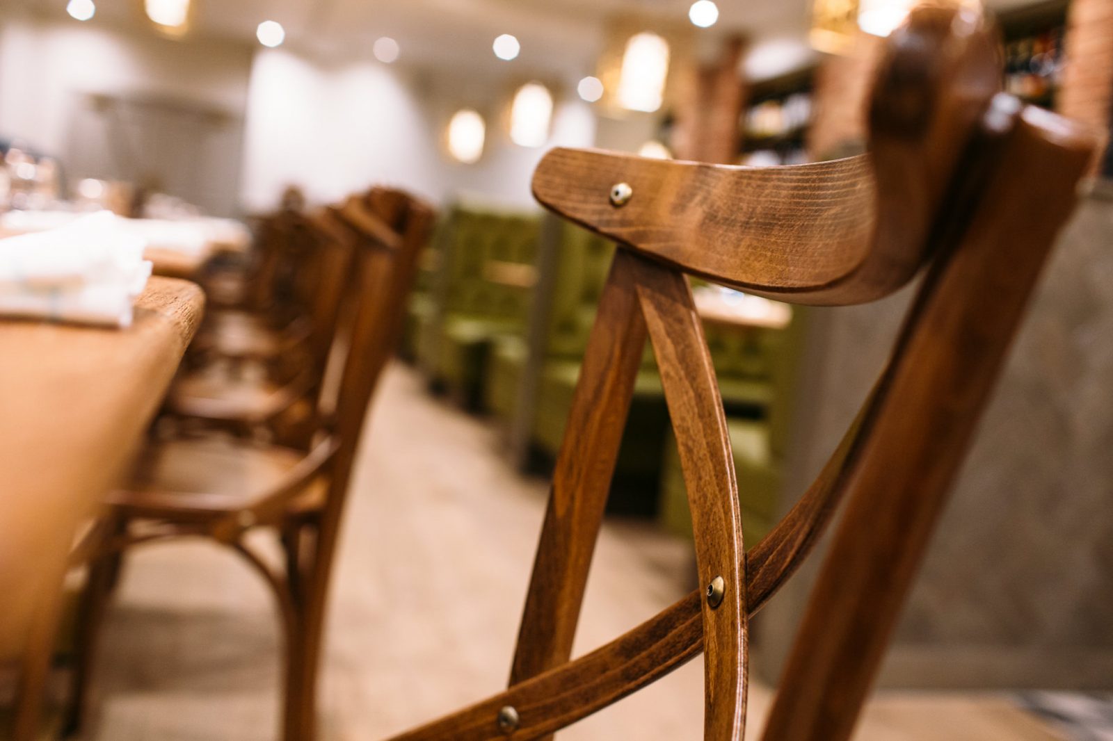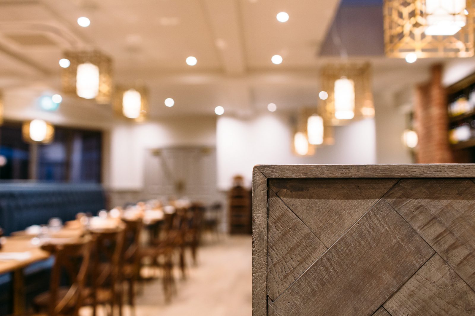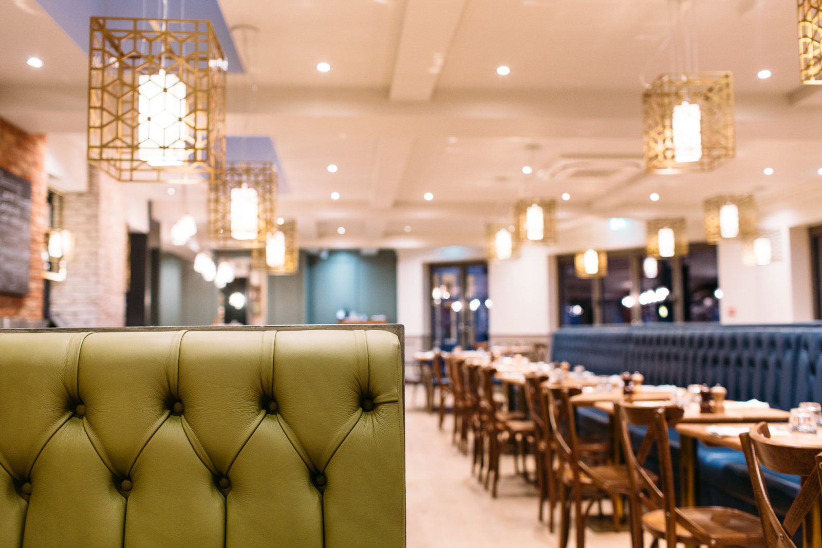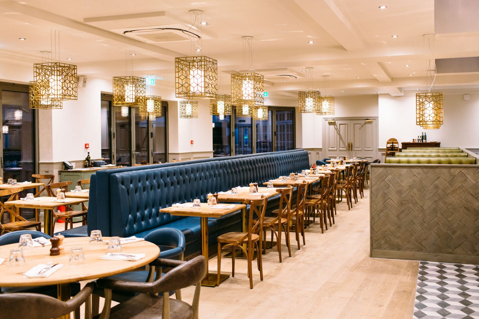 With a colourful pallet across the fixed seating and natural wood used throughout on the loose chairs like the Croce side chairs and on the solid wood table tops, the venue has a playful style and relaxed atmosphere.