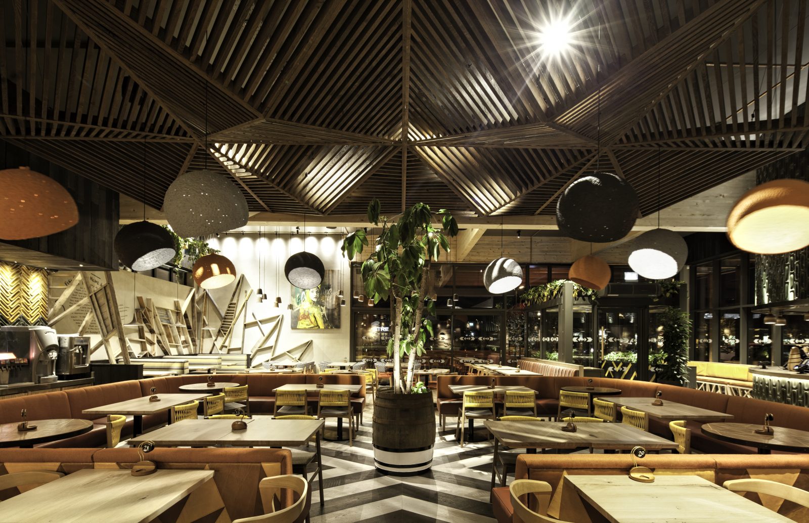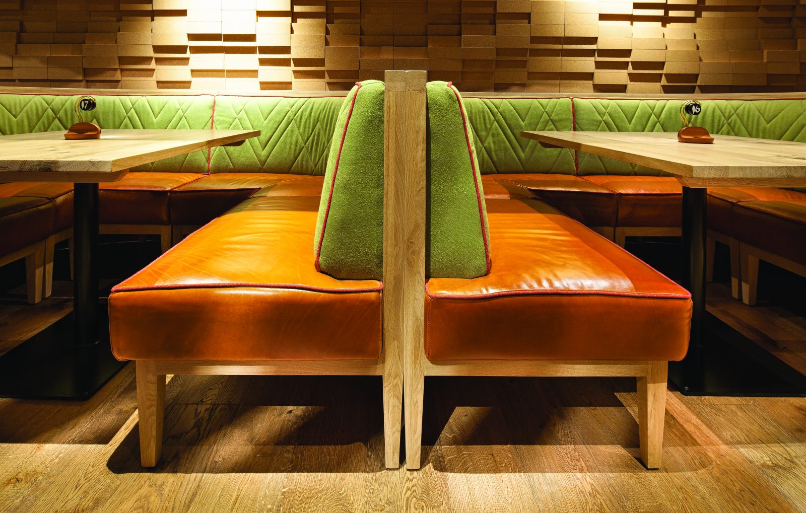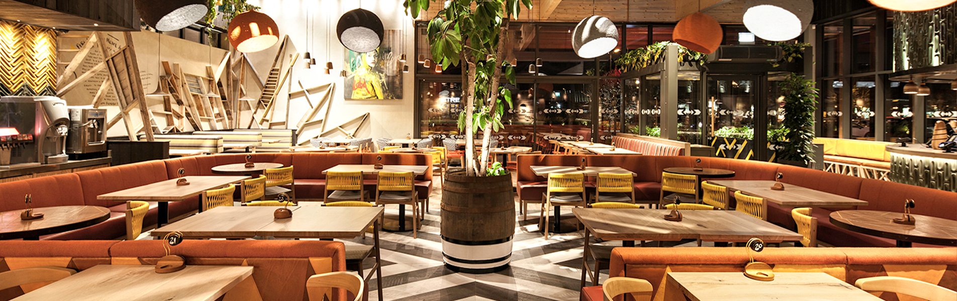 We were delighted to be part of Nandos’ first 100% eco-friendly restaurant, a first for not only the UK but also the planet! Hill Cross Furniture supplied both the fitted and loose furniture. The banquette seating was manufactured using FSC timbers and fillings sourced from locally sourced sheep’s wool and coconut fibres. Loose furniture included chairs from the Load, Luna & Dixie ranges from refurbished stock all upholstered in sustainable fabrics. Table tops were bespoke items and featured a combination of wood, metal and printed designs.