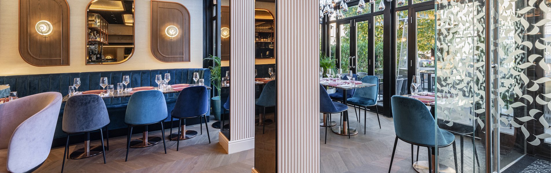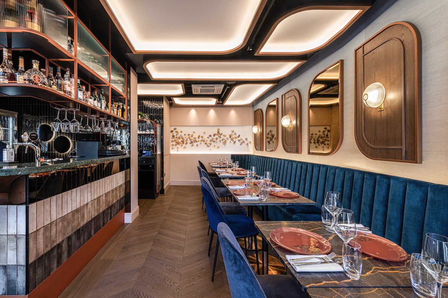 As a hospitality furniture supplier we certainly know when we see a 5 star venue, and Ritu relly hits the nail on the head. The calming blue tones are contrasted by the golden inserts that are featured on the bar and table tops.