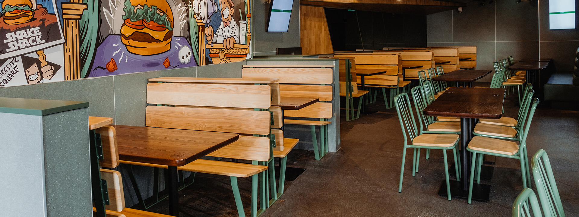 The Shake Shack refurbishment at Leicester Square is a project we’re proud to have worked on, crafting unique fixed seating and loose seating that added a special touch to the space. It’s just one of the many Shake Shack projects we’ve tackled recently, and each one brings its own excitement and challenges. We’re proud to see our work making a difference in such iconic locations.